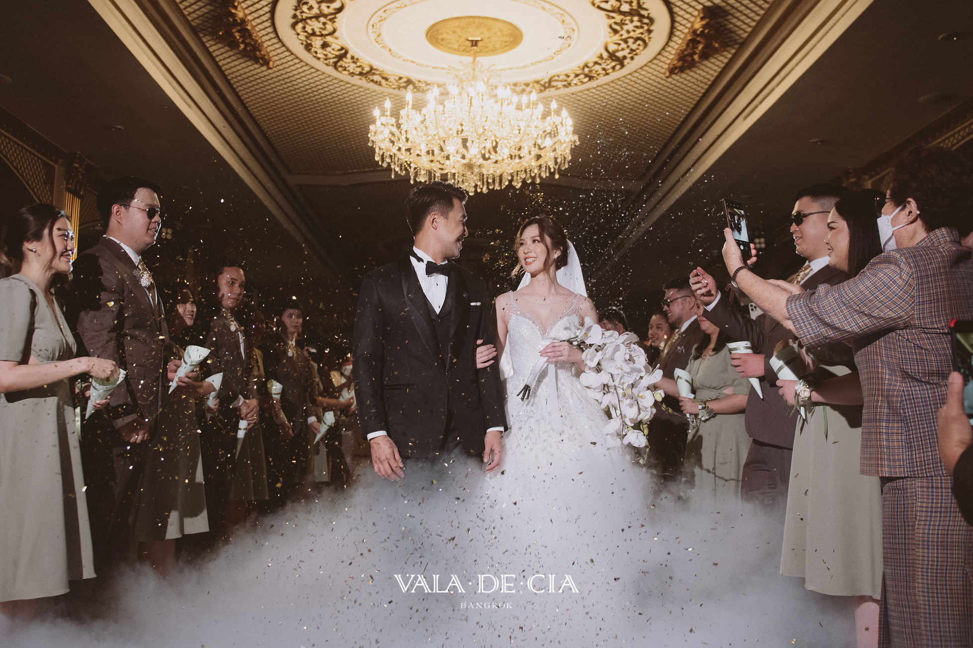 คุณซันและคุณแอล จัดงานแต่งงานกัน ณ Vala De Cia เมื่อเดือนพฤษภาคม 2565 ที่ผ่านมา ด้วยการจัดงานแบบแต่งบ่ายเลี้ยงเย็น จัดเลี้ยงแบบค็อกเทลด้วยจำนวนแขกประมาณ 550 ท่านค่ะ