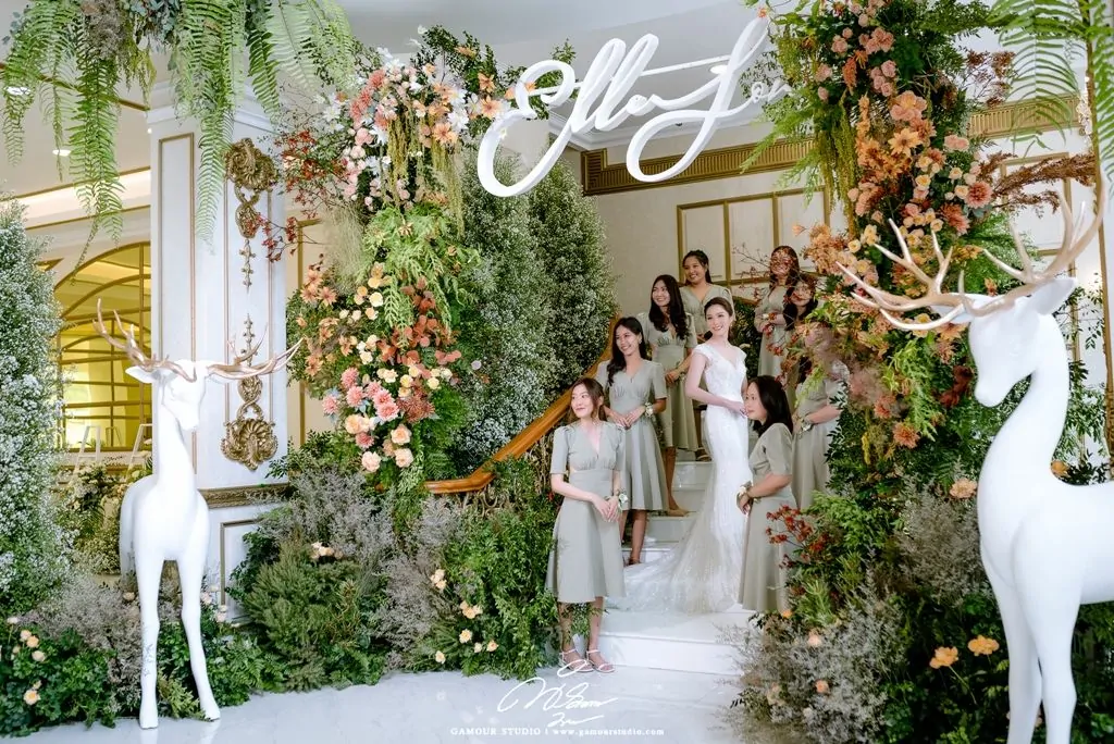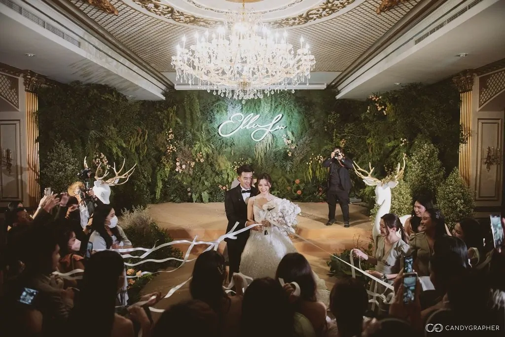 คืองานแต่งงานที่ตกแต่งด้วยกลิ่นอายธรรมชาติ มีสีเขียวของต้นไม้ เน้นบรรยากาศความเป็น Forest